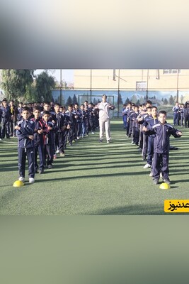 ورزش صبحگاهی آقای معلم و دانش آموزها با آهنگ برزی برزی/ معلم فقط همین و بس👌