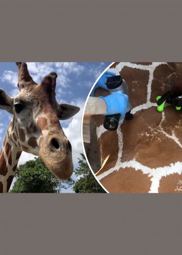 (فیلم) ویدئویی از تیمار کردن و رسیدگی به یک زرافه چهار متری در باغ وحش