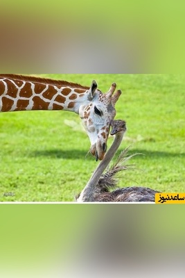 ببینید| رویارویی زرافه و شترمرغ؛ خیره شدن برای رقیب؟