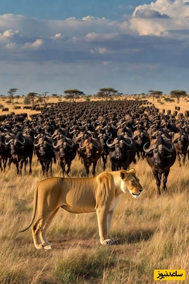 شیر ماده قدرتمند در برابر گله 2000 تایی بوفالوها! (ویدئو)