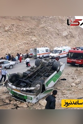 ببینید | ساعاتی پیش صحنه واژگونی مرگبار اتوبوس با 15 فوتی در جاده فیروزآباد استان فارس + ویدئو / خدا کمکشون کنه