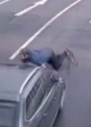 (فیلم) عابر پیادهای که پس از تصادف سر از سقف ماشین در آورد