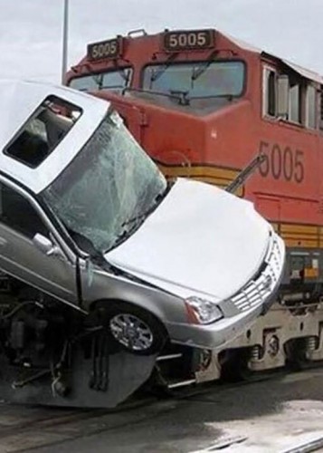 (فیلم) لحظه برخورد قطار با اتومبیلی که روی ریل گیر کرده بود