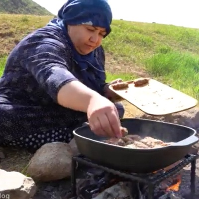 طرز تهیه کباب تابهای مخصوص بروش روستایی در کوه دماوند/ نگم از عطر و طعمش که نظیر نداره!