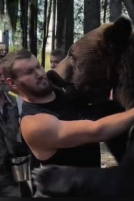 (ویدیو) حرکت عجیب و باورنکردنی روس ها: کشتی گرفتن یک بوکسور روس با یک خرس!