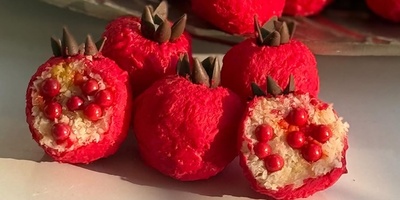 دسرهای یلدایی؛ طرز تهیه شیرینی انار بدون نیاز به فرو همزن مخصوص یلدا استیکر/ با این دسر مهمونا انگشت به دهن میمونن 😍+ ویدئو