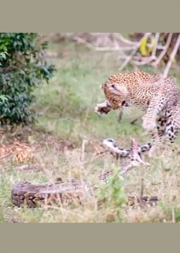 (فیلم) شکست مرگبار مار پیتون در جنگ تمام عیار با پلنگ