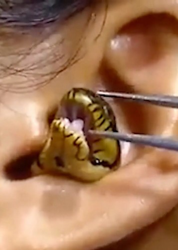فیلم وحشتناک از تلاش برای بیرون آوردن مار زنده از گوش زن جوان