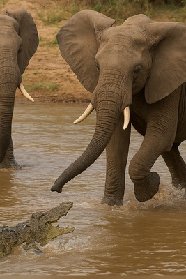 حیات وحش ؛ مستند حیات وحش حیوانات / نبرد دیدنی یک کرورکودیل در محاصره چند فیل در رودخانه