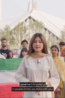 (فیلم) پیامی از مردم پاکستان به ایرانیان با عکس سحر امامی: ایران تنها نیست، ما با شما هستیم