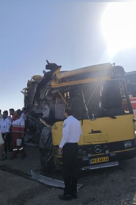 (ویدیو) لحظات دلخراش تصادف اتوبوس دانشجویان پیراپزشکی/ متأسفانه دو نفر جان باختند...