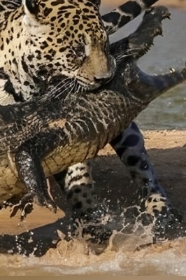 (ویدئو) خونسردی حیرتانگیز یک جگوار هنگام شکار تمساح