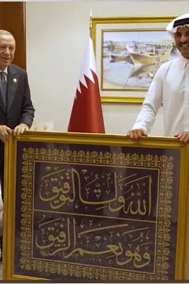 لبخند اجباری و مصنوعی اردوغان هنگام هدیه دادن به امیر قطر+ویدیو/ نگاههای رئیسجمهور ترکیه شبیه جمله «کوفتت باشه» بود!