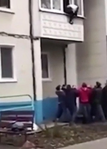 (فیلم) پریدن از پنجره آپارتمان برای فرار از آتش سوزی