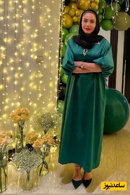 (عکس) جشن تولد فوق لاکچری آزاده زارعی، بازیگر سریال آوای باران با دیزاین خاص و جذاب بادکنک های طلایی و تم رنگی سبز