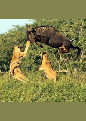 (فیلم) فرار دیدنی کل یالدار از چنگال چند شیر ماده
