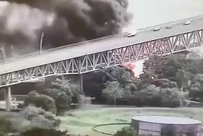 تصاویر هولناک از انفجار تانکر روی پل؛ خودروها در حلقه آتش گرفتار شدند