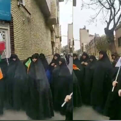 (عکس) حضور دختران جوان در راهپیمایی 22 بهمن امروز و پلاکارد حجاب!