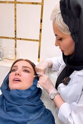 ویدیویی از متین ستوده عروس خانوم قدبلند در حال تزریق ژل و انجام کارهای زیبایی بر روی صورتش؛ برای عروسی حسابی پوستش آماده بود!