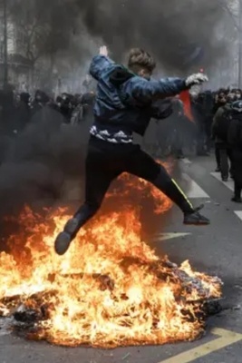 (فیلم) آتش زدن اسناد و مدارک بانک توسط معترضان فرانسوی