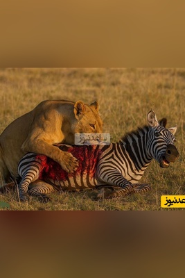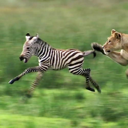 (فیلم) شکار آکروباتیک گورخر توسط شیر گرسنه
