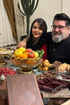 نگاهی به چیدمان میز یلدایی مجلل و با اصالت مهدی یغمایی در منزل / پشت صحنه شوخی های یلدایی مهدی یغمایی و همسرش نگار که چندان عاشقانه هم نبود😂