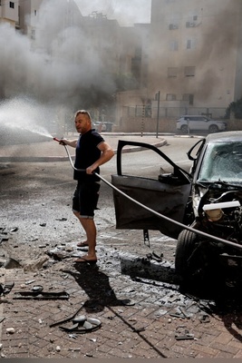 واژگون شدن خودروهای اسرائیلی بر اثر ترس از موشکهای ایرانی+عکس