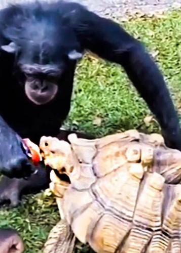 (فیلم) همسفره شدن شامپانزه مهربان و لاک پشت!