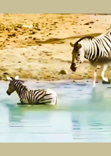 (فیلم) گورخر بی رحمی که سر فرزندش را زیر آب کرد