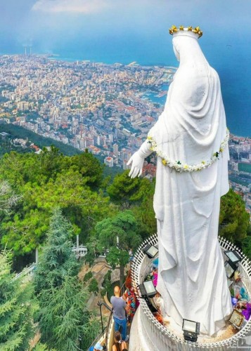(فیلم) مجسمه مریم مقدس در «حریصا» یکی از مکانهای مهم زیارتی در لبنان