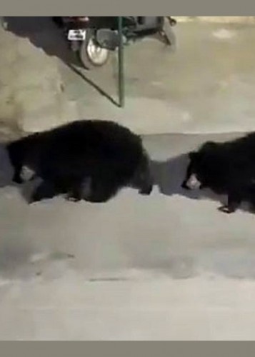 (فیلم) وحشت مردم از ورود خرس ها به ایستگاه پلیس