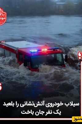 لحظه وحشتناک غرق شدن خودروی آتش نشانی در سیلاب شهرستان پارسیان با یک قربانی + ویدئو