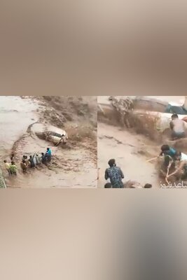 (فیلم) تلاش مردم برای نجات یک شهروند از غرق شدن در سیلاب