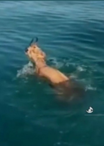 بیرون کشیدن بچه آهو از دریا توسط یک ماهیگیر