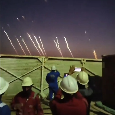 (فیلم) هیجان کارگرهای چینی در عراق از شلیک گسترده موشکهای ایرانی به سمت اسرائیل