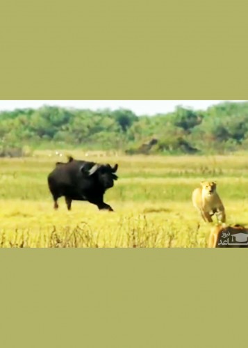 لحظه باورنکردنی فرار شیر از چنگال بوفالو