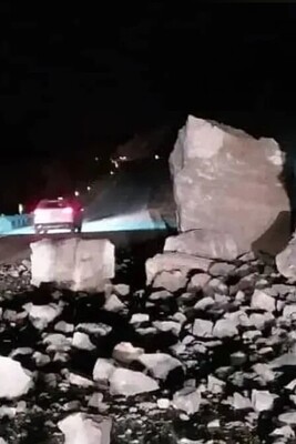 لحظه ریزش کوه در اتوبان قزوین-رشت و شوک جدی مسافران نوروز