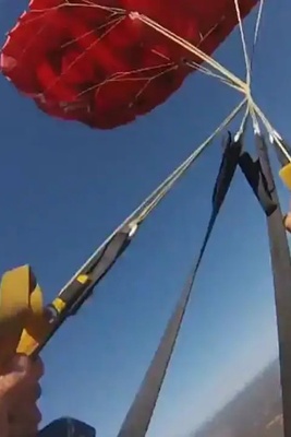 (فیلم) پاره شدن طناب اتصال یک چتر باز از بالون و سقوط او