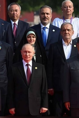 حضور زهرا پزشکیان پشت سر پوتین برای ثبت عکس یادگاری در این مراسم پربازدید شد+ ویدیو