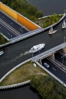 (ویدئو) شاهکار مهندسی هلند؛ جایی که کشتیها از روی اتوبان عبور میکنند! آبگذر ولئومیر شما را مات و مبهوت میکند