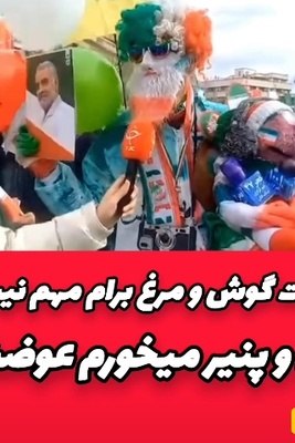فیلم/حضور خلاقانه جناب خان در جریان برگزاری راهپیمایی باشکوه 22 بهمن: قیمت گوشت و مرغ مهم نیست، نون و پنیر می خورم!