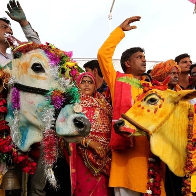 تصاویری از مراسم عروسی گاو نر و ماده در هند