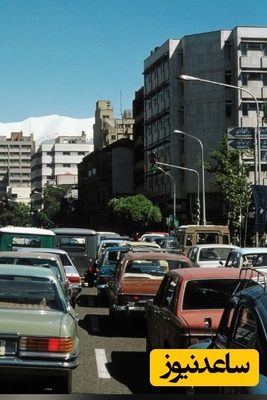 نمایی از ترافیک سنگین تهران در دهه 40 با خودروهای رنگی رنگی + عکس