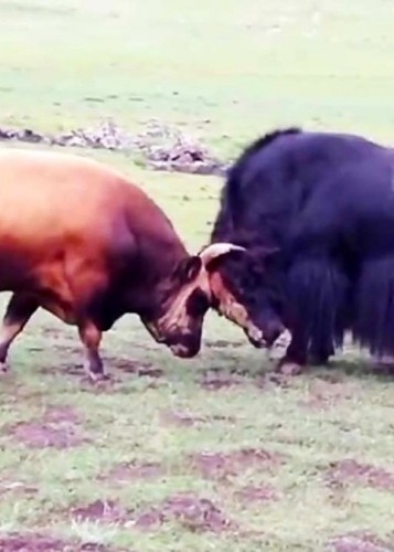 (فیلم) شاخ به شاخ شدن دو گاو وحشی و پرتاب به دره!