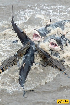 مستند حیات وحش فرمانروایان اقیانوس/ رازبقا: نبرد دلهره آور کوسه های وحشی با گله کروکودیلها در آب+فیلم +18