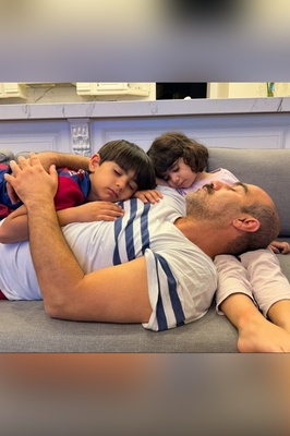 محسن تنابنده تبدیل به مُدل زنده نقاشی های پسر کم سن و سالش شد/ ماشاءالله هنرمند بودن تو این خانواده ارثیه+عکس