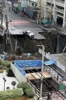 ببینید؛ لحظه وحشتناک فرونشست زمین و ایجاد گودال 50 متری کنار بیمارستان که منجربه تخلیه 3500 بیمار شد