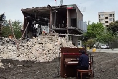 (ویدئو) نغمهای برای صلح؛ ویدیوی وایرال شده از پیانونوازی حزنانگیز دانشجوی دانشگاه شریف در میان آوارهای جنگ