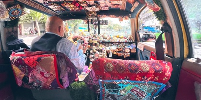 تاکسی یا گالریِ هنری؟؛ خلاقیت راننده خوش ذوق شیرازی در جذب مسافر با تزئینات بامزه و وسایل راحتی/ از متکا تا انواع دیوارکوبهای مینیاتوری و چمن مصنوعی+ویدیو
