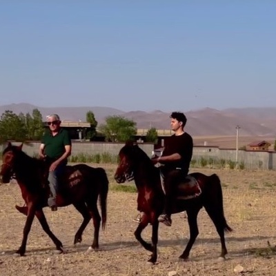 (ویدیو) تمرین سوارکاری دانیال پورصباح، منصور سریال بامداد خمار با رضا کیانیان در پشت صحنه سریال/ قبول دارین خیلی جنتلمنه؟